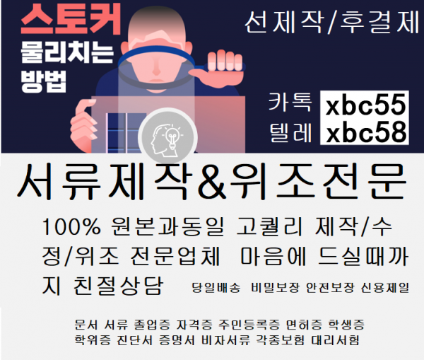 제작전문업체★톡상담xbc55▲텔레xbc58 #각종대리시험#면허증위조#성적표위조#신분증제작#대리시험#통장제작#주민등록증제작#은행거래내역서위조